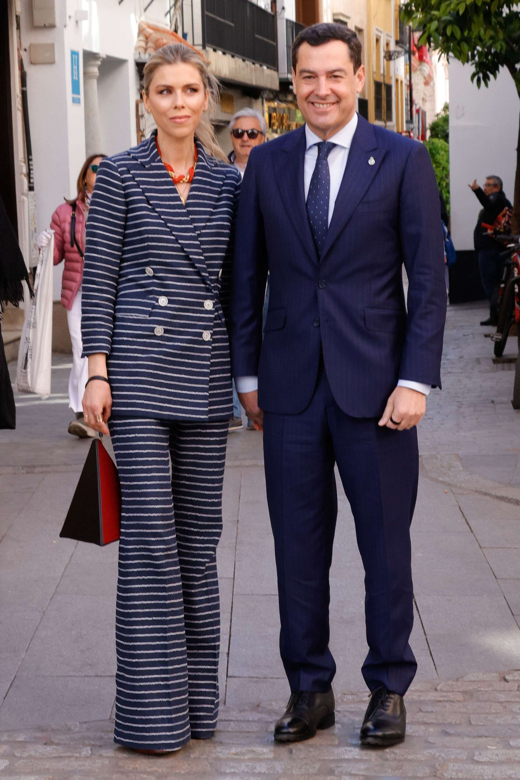 La mujer de Juanma Moreno apostó por un look que encaja a la perfección con el carácter solemne de la jornada: sobrio, cuidado y con ese punto sofisticado que no necesita excesos para destacar.
